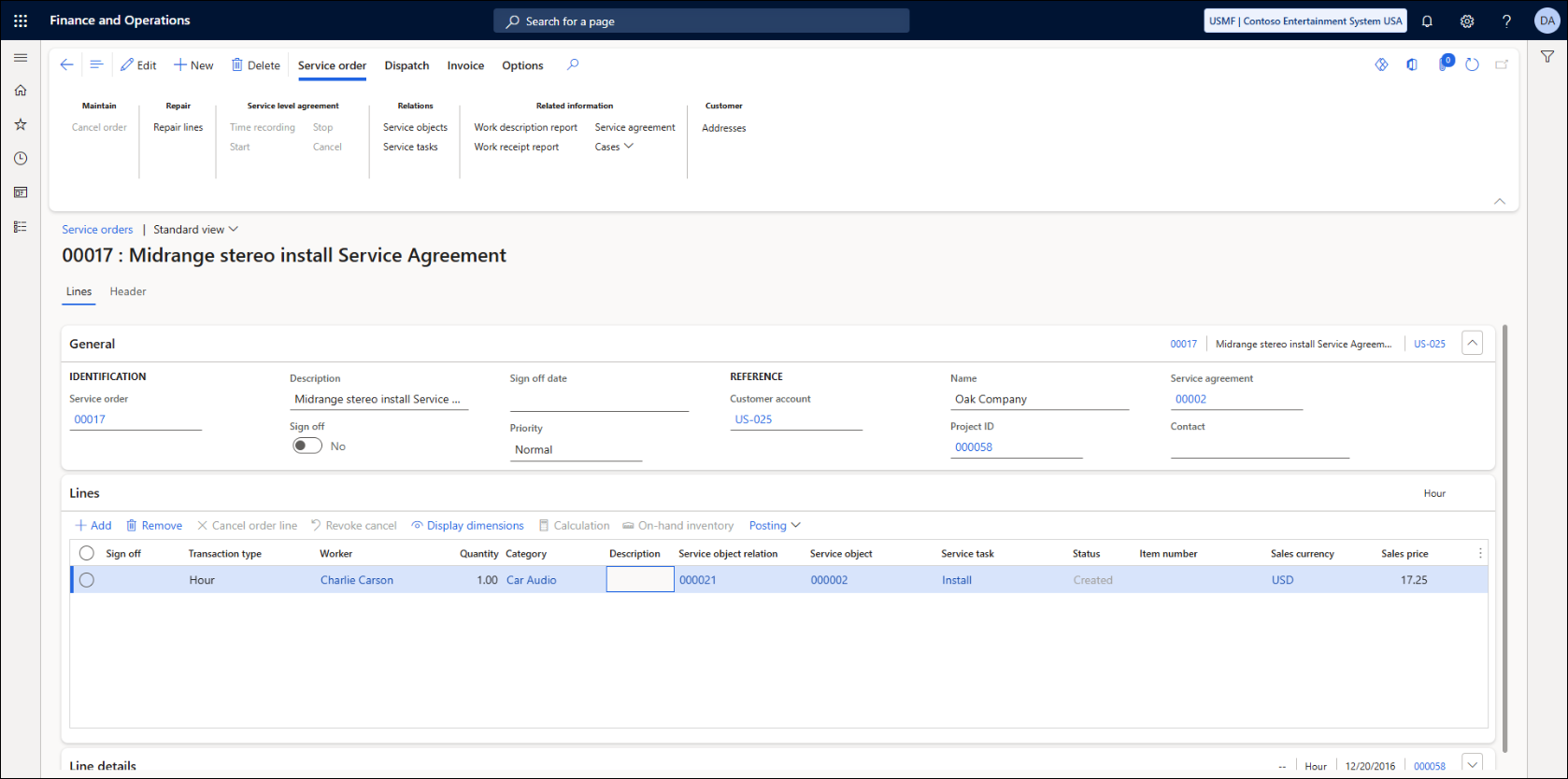 In a typical Service Management scenario, a customer calls to report an issue with their equipment (something your company sold). A service order is created to capture the details of the issue, the item involved, and the work to be done. If the customer has a service agreement in place, the order may inherit predefined response times, pricing, and billing terms.