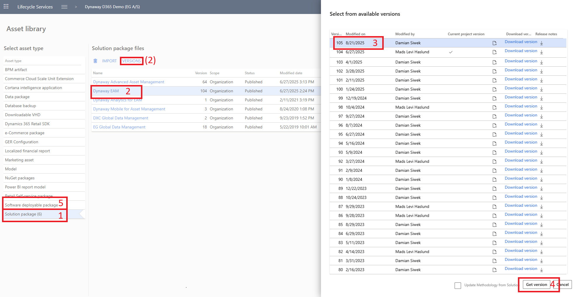 - You will not get notifications from LCS regarding solution package imports and version updates. Verify that the Dynaway Enterprise Asset Management solution is available in the Asset Library.