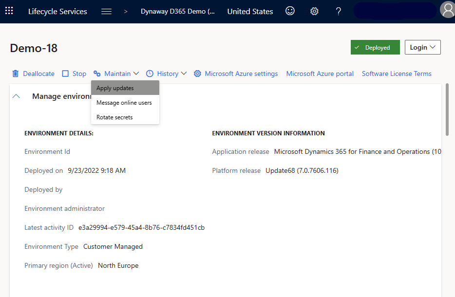 Note: Before deployment, ensure that the active version of Dynaway Mobile in LCS is compatible with the Application Update version of Dynamics 365 for Finance and Operations.