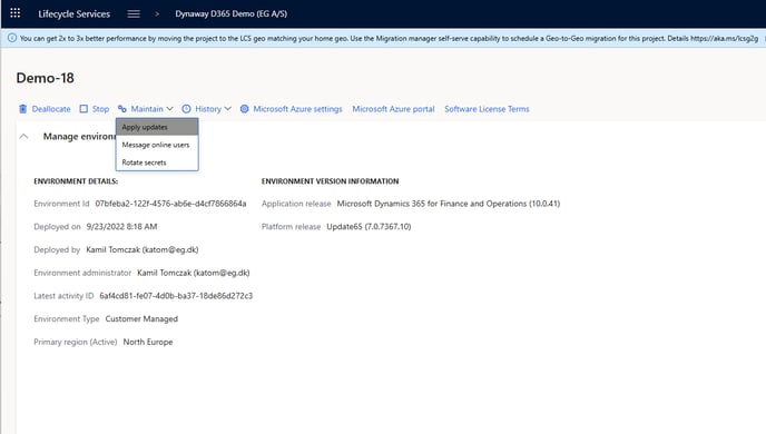 Go to the environment (Here Demo-18 EAM) Steps are the same for Advanced Asset Management