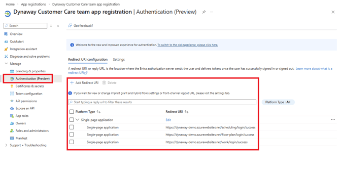 - Under Single-page authentication > Redirect URLs, add the redirect URLs as below (see screenshot 02):