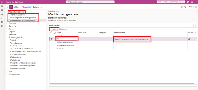 - Add direct URL to Work Execution App, for example, https://yourappname.azurewebsites.net/work.