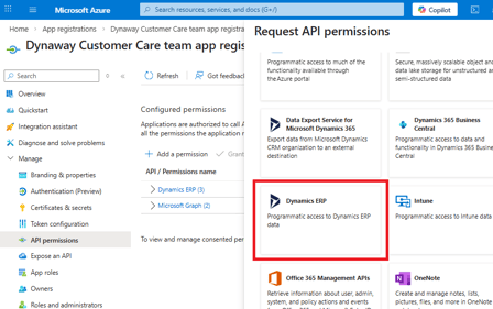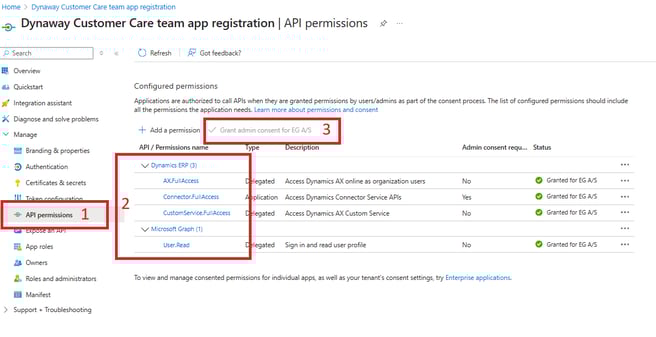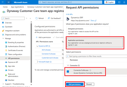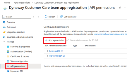 - Select Add permission > Dynamics ERP (see screenshot 01,02,03,04,05).
