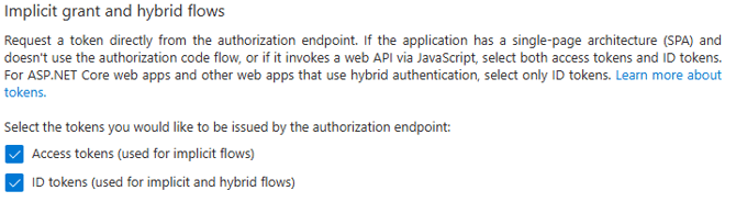 - Under Implicit grant and hybrid flows (see screenshot 06) enable the checkboxes corresponding to Access tokens (used for implicit flows) and ID tokens (used for implicit and hybrid flows).