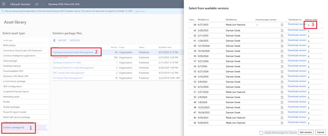The files to be uploaded are located in the .zip file. The zip package can be downloaded from lcs.dynamics.com, as shown in the screenshot below.