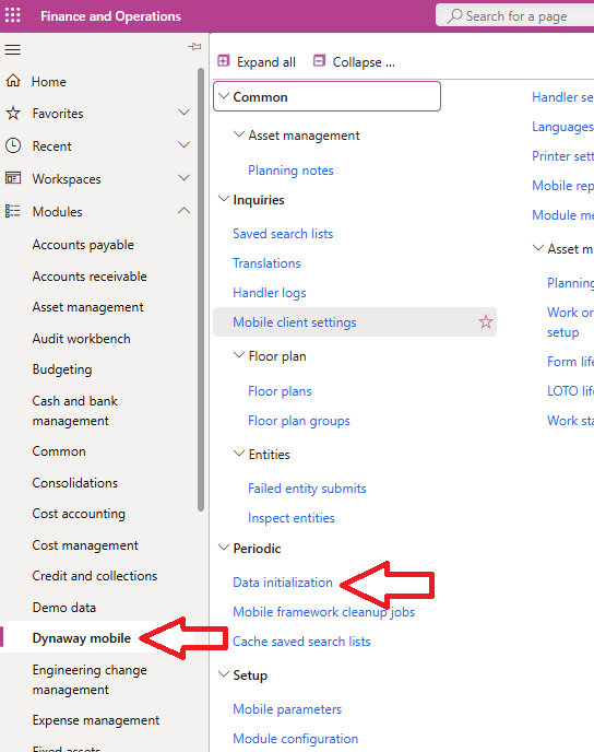 To do Data initialization after installation or upgrade. Hit Dynaway mobile and Data initialization and click OK