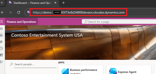 The URL for the Dynamics 365 for Finance and Operations environment.