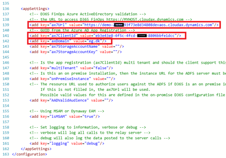 <add key="ax7ClientId" value="eb3e43e8-6f5c-4fcd-xxxx-8806bbfe1dcc"/>