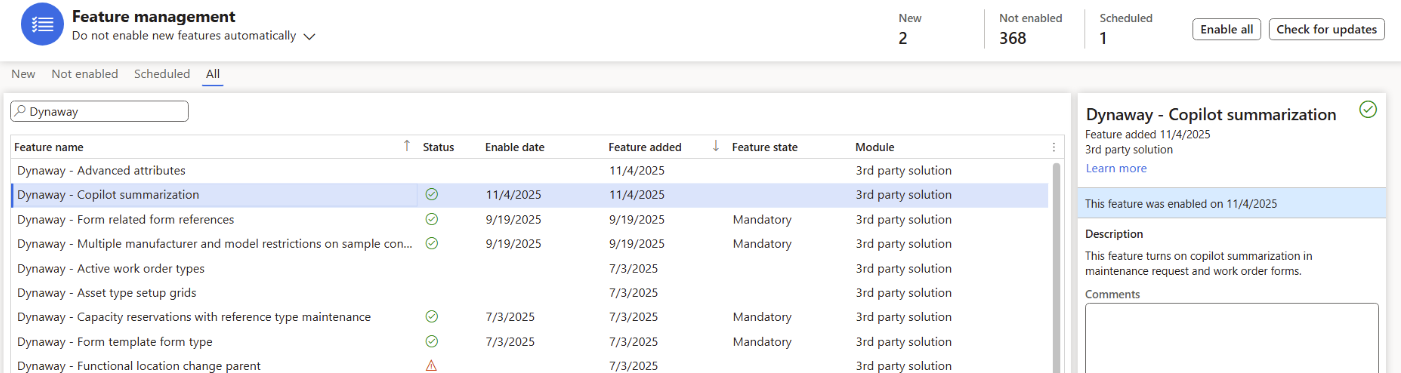 Under Asset management > Setup > Asset management parameters > Open AI integration,